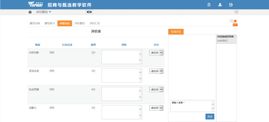 通過樣例練習,建立評分標準體系,輔助學生在招聘與甄選模塊進行客觀、公正的評分。
